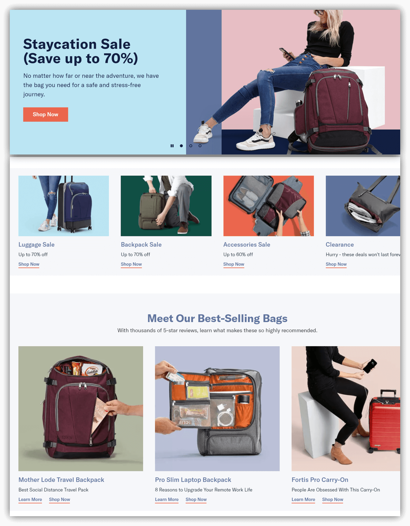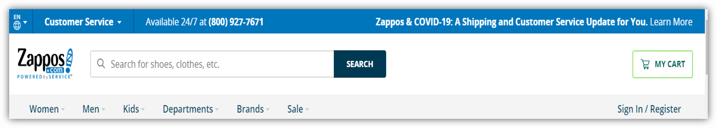 - Include phone number, search box, site navigation, shopping cart, tagline/ key messages
