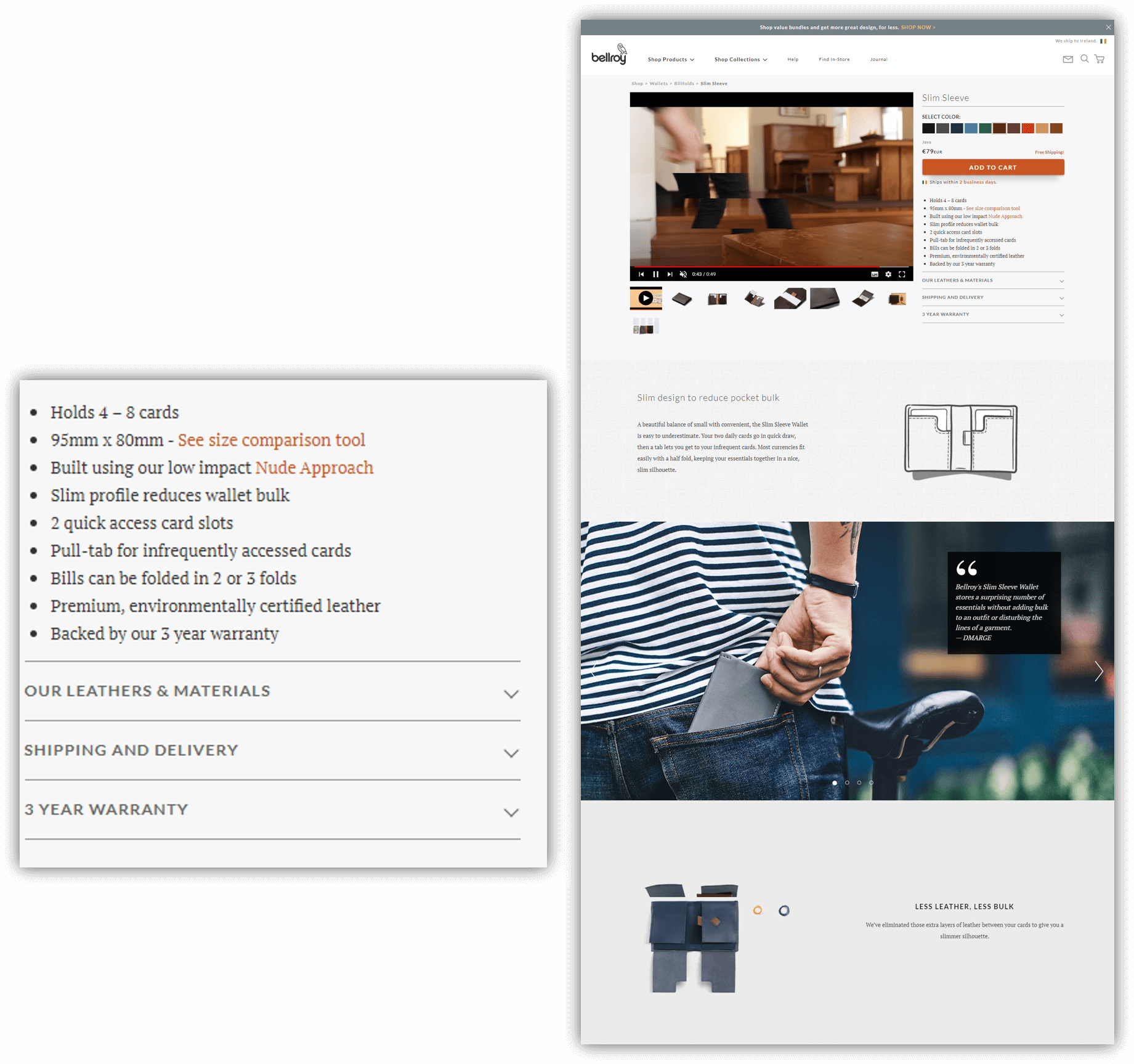- Trust signals – include security, shipping info, payment methods, contact details, live chat